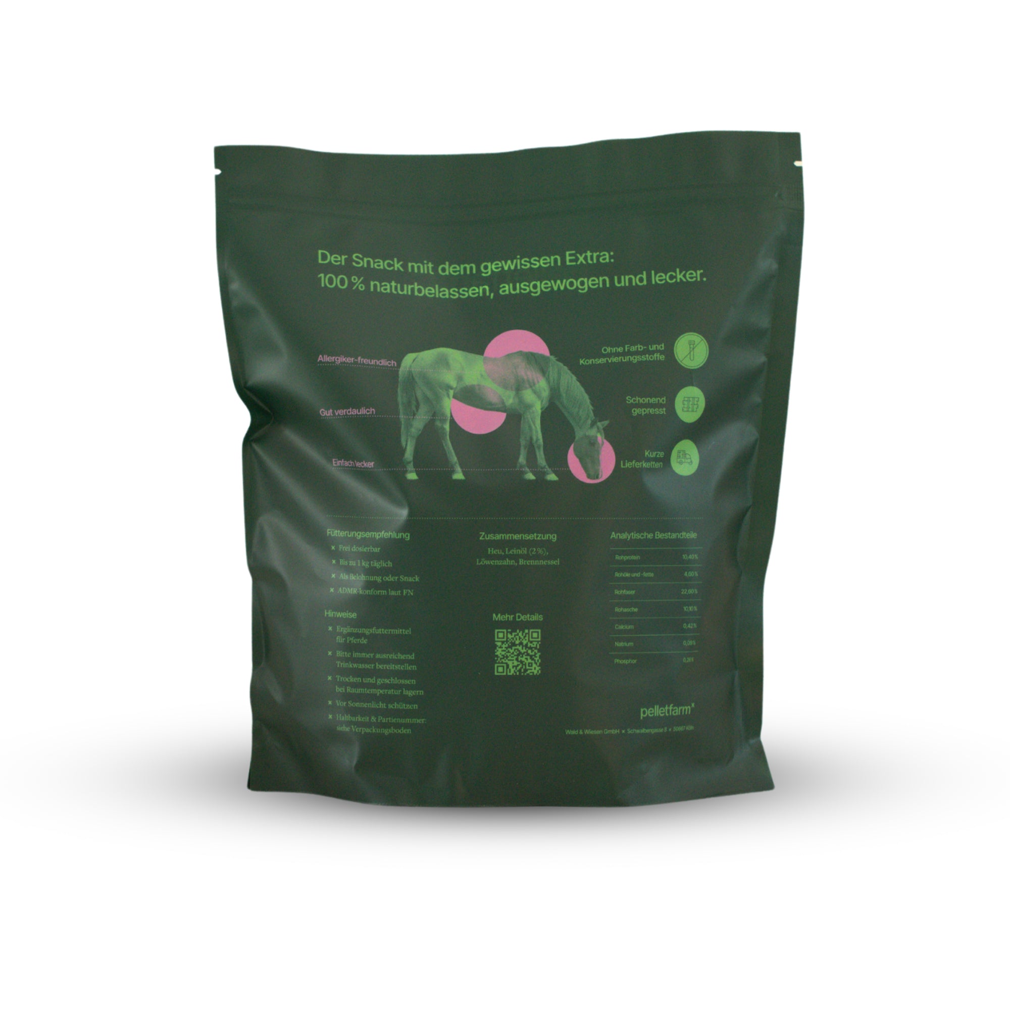 Nur vier Zutaten: Wiesenheu, Leinöl, Brennnessel, Löwenzahn